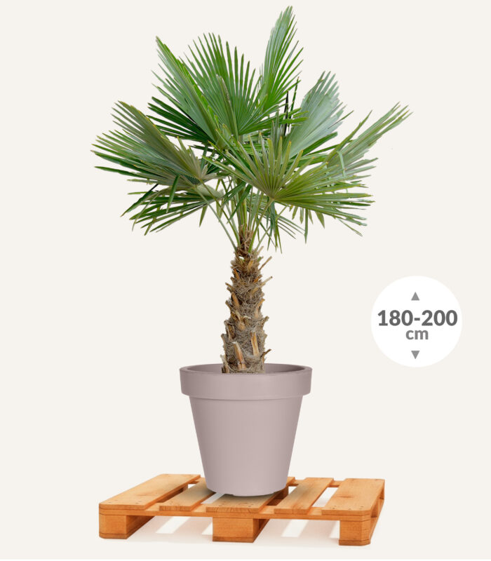 € 279,00Palmboom 30/40 in ronde vlakke steenlook pot
