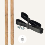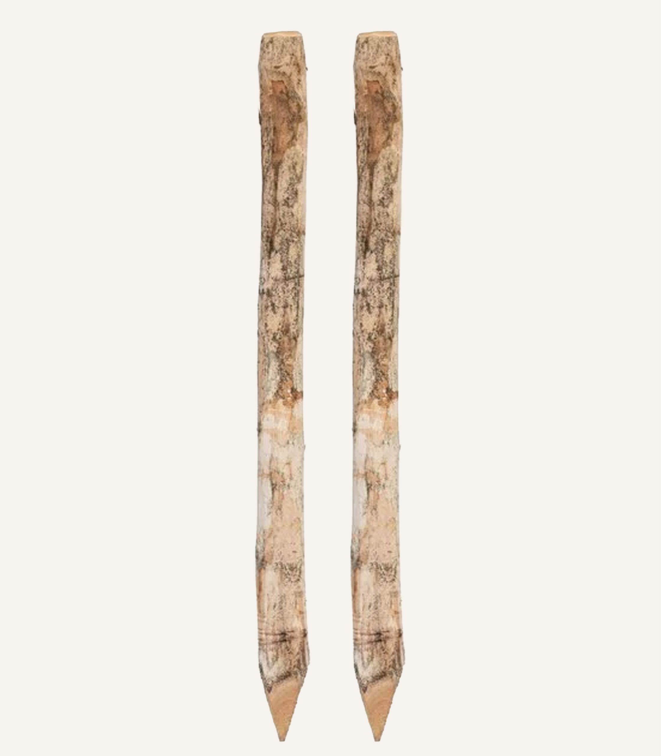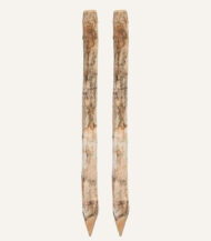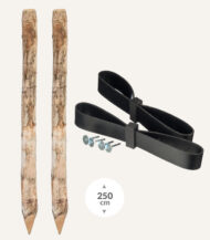 Een vooraf samengestelde bundel van twee robuuste Robinia boompalen en de benodigde boomband, bandlus en spijkers.
