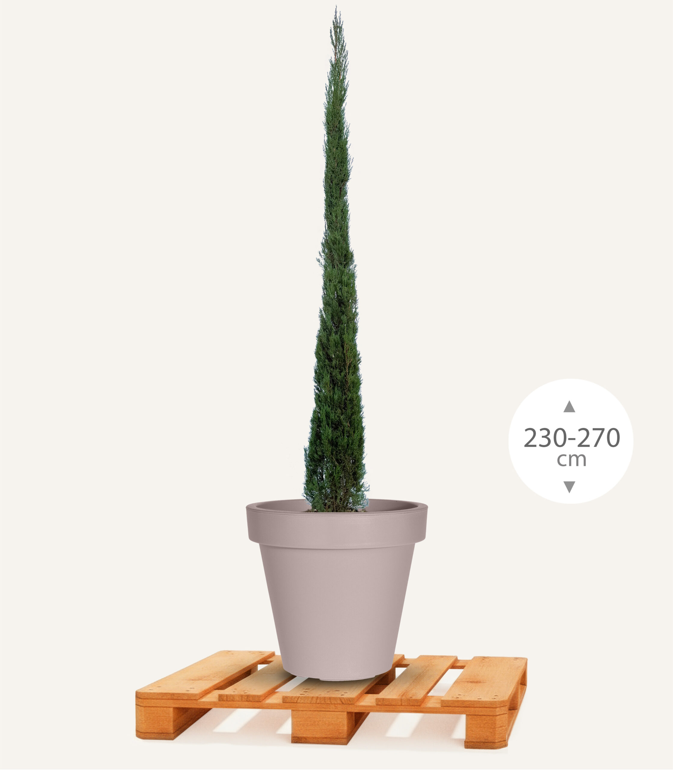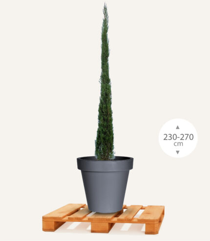 Deze slanke, zuilvormige conifeer staat bekend om zijn donkergroene naalden en strakke groeiwijze. Dankzij zijn smalle, opgaande vorm is deze cipres perfect in pot op terras en balkon. De Cupressus sempervirens ‘Pyramidalis’ geeft iedere tuin direct een luxe, zuidelijke uitstraling.