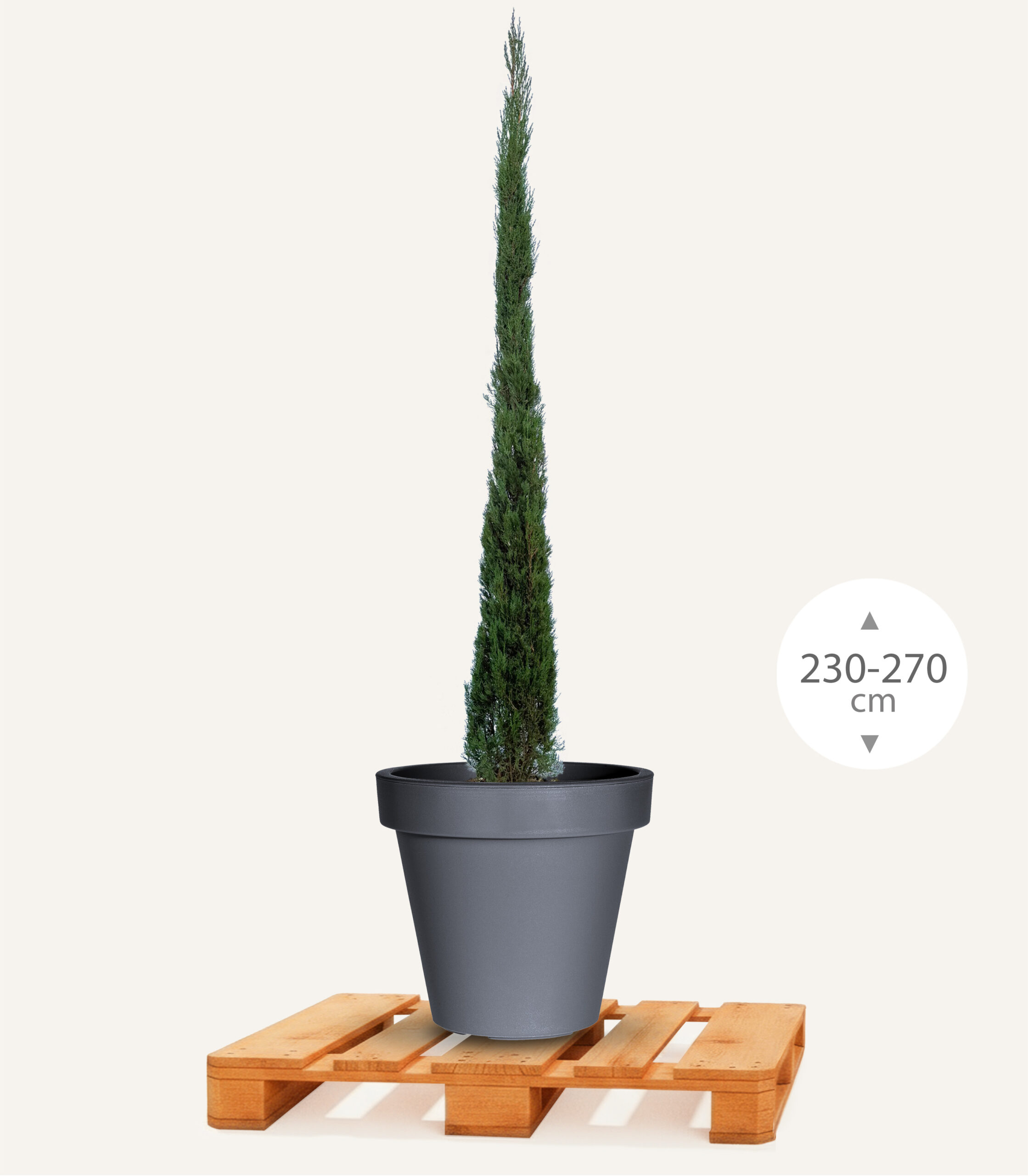 Een Cipres, kant&klaar, aangeplant in een van onze mooie sierpotten voorzien van de allerbeste aanplantgrond. Ideaal voor de ongeduldige groenfanaat: instant genieten.