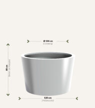 Deze boompot is verkrijgbaar in verschillende kleuren. De boompotten kunnen binnen en buiten gezet worden. Wanneer je de pot buiten zet, zorg dan voor een goede afwatering. De ronde boompot is ideaal om je bedrijf mee te versieren, of om jouw terras in de tuin Een luxe maar speelse uitstraling te geven. Deze potten hebben ook een optie om in eigen Ral kleur te laten spuiten, vraag ernaar!