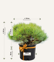 Deze bijzondere pijnboom staat bekend om zijn compacte groei, korte naalden en sterke uitstraling. De donkergroene naalden vormen een mooi contrast met de ruwe bast en geven de boom een natuurlijke, mediterrane uitstraling. Dankzij zijn karaktervolle vorm is deze den perfect als solitair in de tuin, in grote borders of als eyecatcher bij een terras.