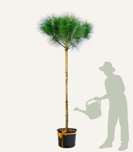 De Pinus pinea is een sterke en redelijk winterharde boom. Geef de boom regelmatig water, vooral in droge periodes en na aanplant. Zorg voor een goed doorlatende, luchtige grond en plaats hem bij voorkeur op een zonnige, beschutte plek. Bemest in het voorjaar en de zomer voor een gezonde groei en sterke naalden. Een goede verzorging draagt bij aan een mooie, volle kroon.
