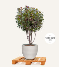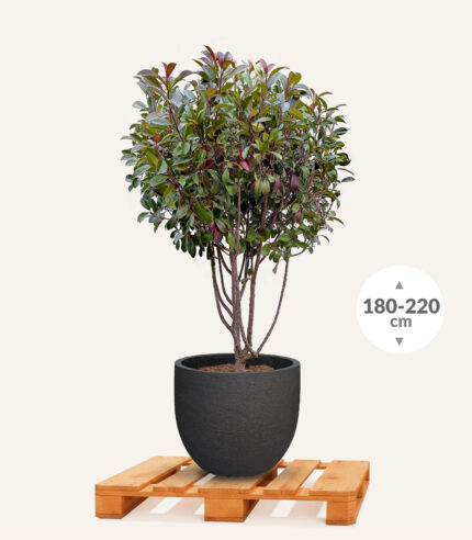 Een meerstammige Glansmispel, kant&klaar, aangeplant in een van onze mooie sierpotten voorzien van de allerbeste aanplantgrond. Ideaal voor de ongeduldige groenfanaat: instant genieten.