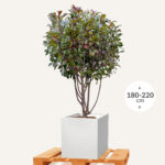 Deze populaire meerstammige staat bekend om zijn opvallende rode uitlopers in het voorjaar, die prachtig contrasteren met het glanzende, donkergroene blad. Dankzij zijn meerstammige vorm heeft deze Photinia een elegante en speelse uitstraling. Hij is perfect als solitair in de tuin, in borders of als eyecatcher bij een terras.
