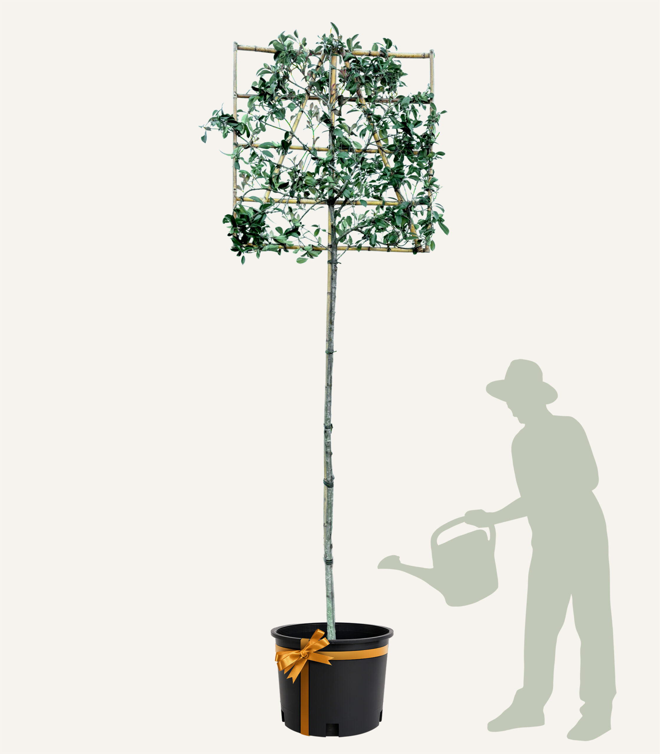 De Glansmispel ‘Red Robin’ Leiboom is een sterke en winterharde plant. Geef de boom regelmatig water, vooral in droge periodes en na aanplant. Zorg voor een goed doorlatende, voedzame grond en plaats hem bij voorkeur op een zonnige tot halfschaduwrijke, beschutte plek. Bemest in het voorjaar en de zomer voor een gezonde groei en een intens rode bladkleur. Regelmatig bijsnoeien helpt om de leivorm strak te behouden.