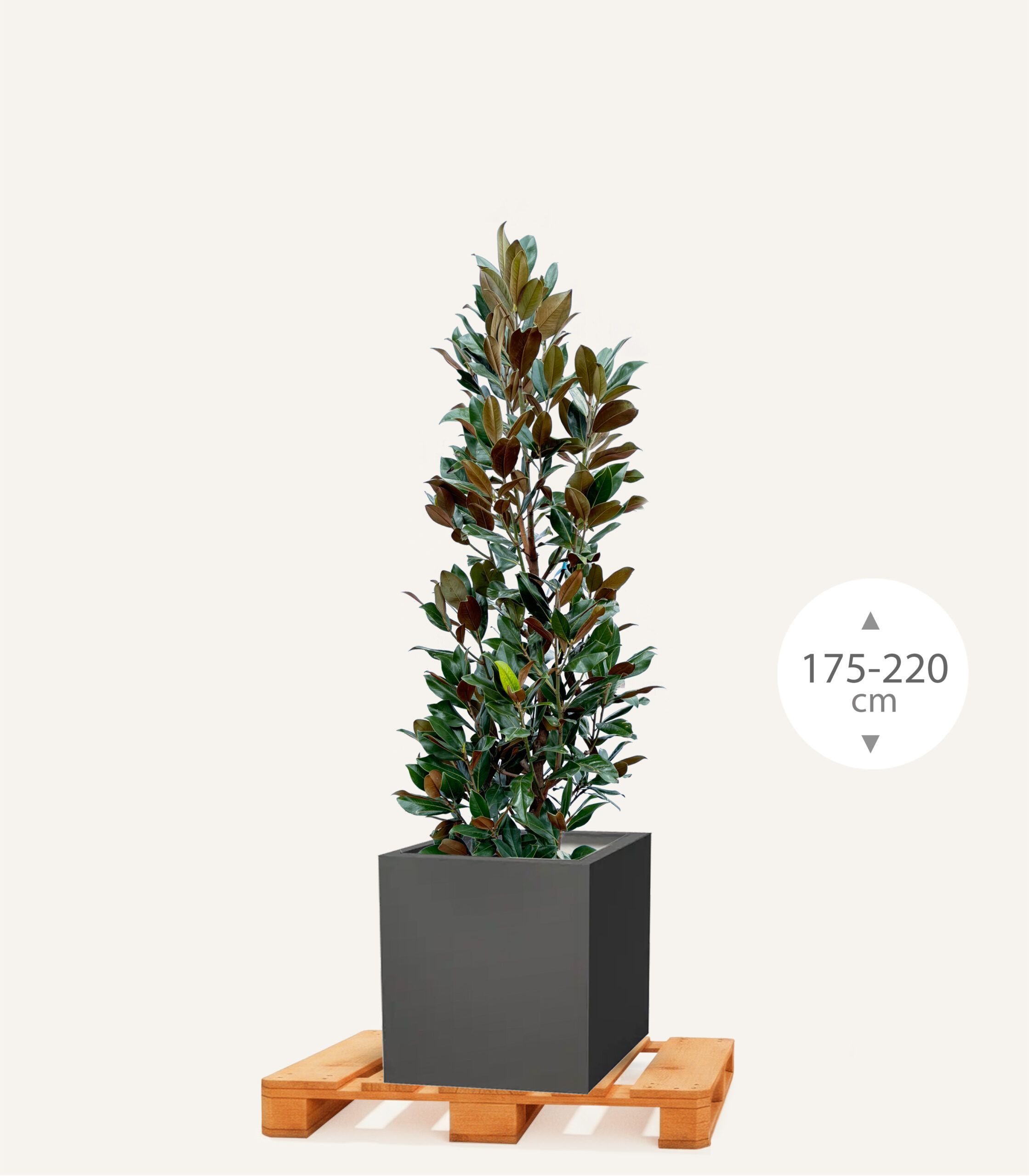 Groenblijvende Magnolia 175/200 in vierkante polyester bak