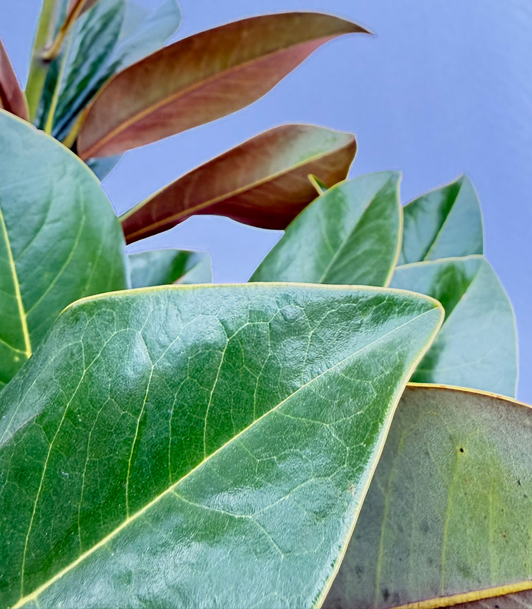 De Magnolia grandiflora biedt het beste van twee werelden: bloei in de zomer en groen in de winter. Met haar gigantische, bruin-groene, bladeren een spraakmakend object in elke tuin.