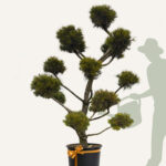 Deze bijzondere den staat bekend om zijn decoratieve, bolvormige “pompons” op stam en zijn frisgroene tot blauwgroene naalden. Dankzij zijn sculpturale vorm en moderne uitstraling is deze pijnboom perfect als solitair, in borders, in een Japanse tuin of als eyecatcher op het terras.