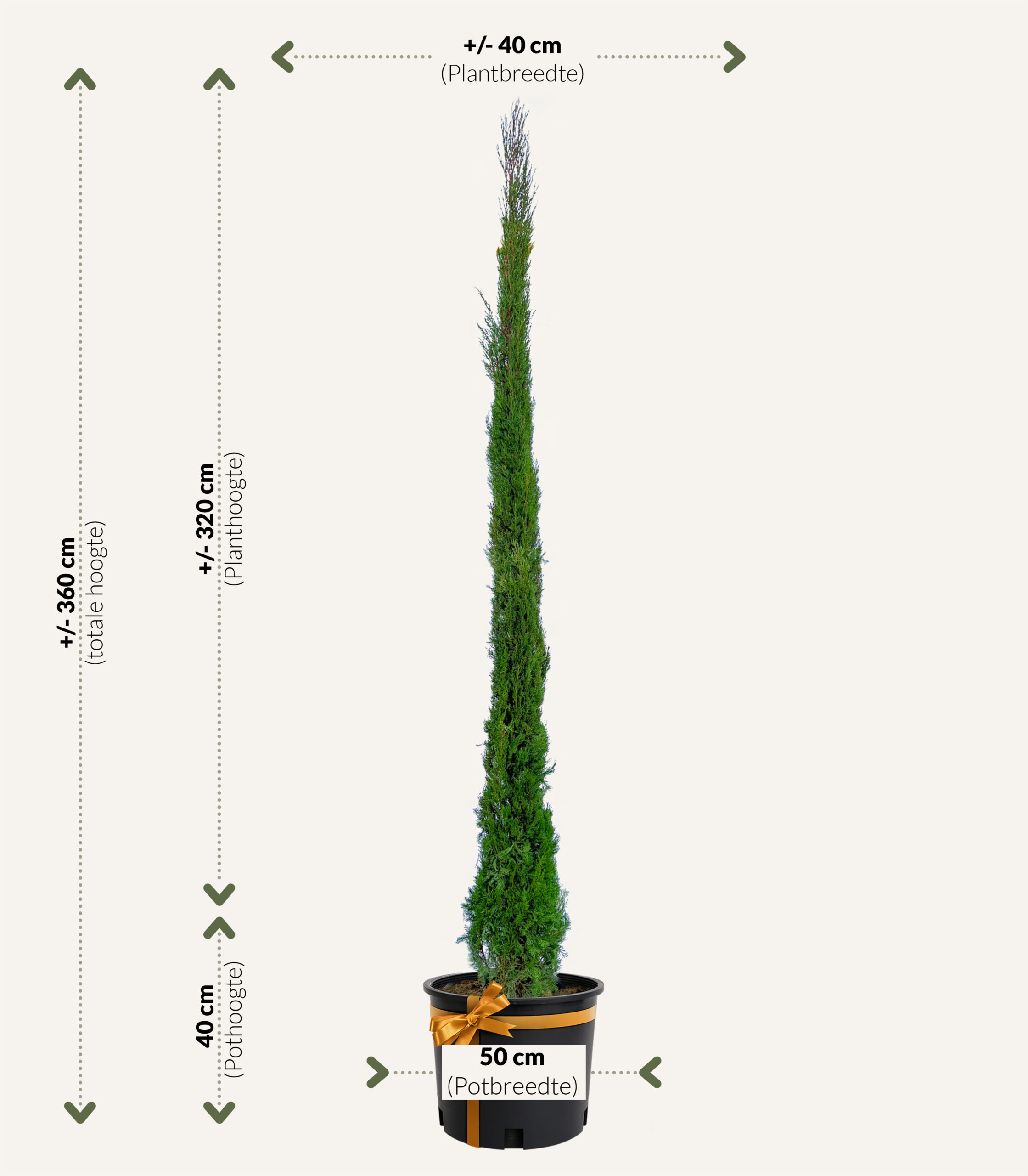 Voor deze Italiaanse cipres – Cupressus sempervirens ‘Pyramidalis’ 300/350 adviseert onze BoomBaas 1 stuk Hydrokorrels en 3 stuks Mediterrane substraat.