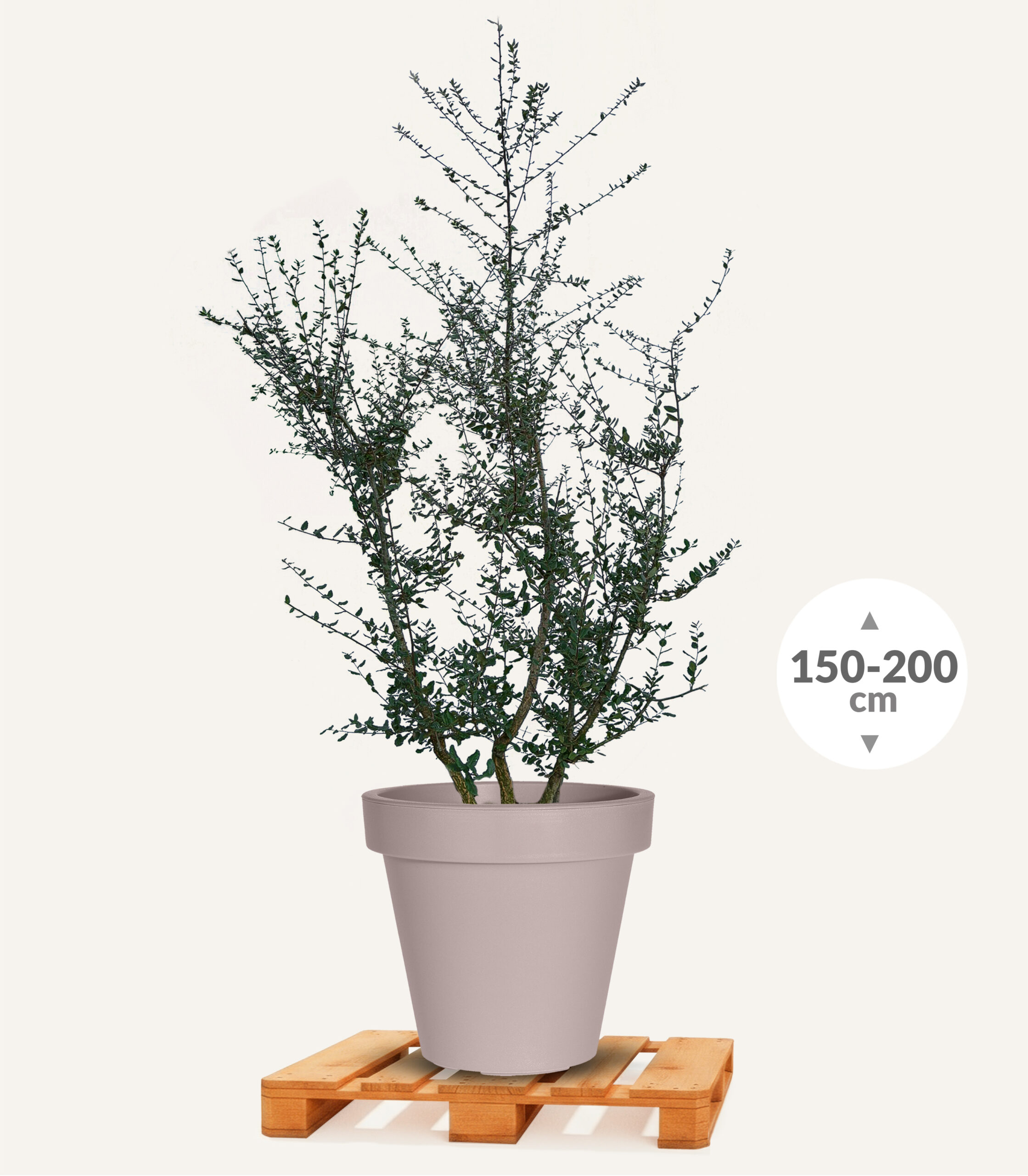 U bent als klant zelf verantwoordelijk voor het daadwerkelijk ‘plaatsen’ van de kurkeik in pot op de gewenste locatie. Vaak is het plaatsen van de boom in pot heel eenvoudig als u enkele krachtpatsers uit de buurt weet te strikken. Til met 3-4 man de boom in pot op en laat een andere man de pallet onder de pot uit trekken. Een alternatieve manier is om de boom in pot met 2 personen langzaam van de pallet af te draaien en op een rubber matje o.i.d. te laten zakken zodat de pot niet beschadigd. Verschuif of verplaats de pot vervolgens naar de exact gewenste locatie.