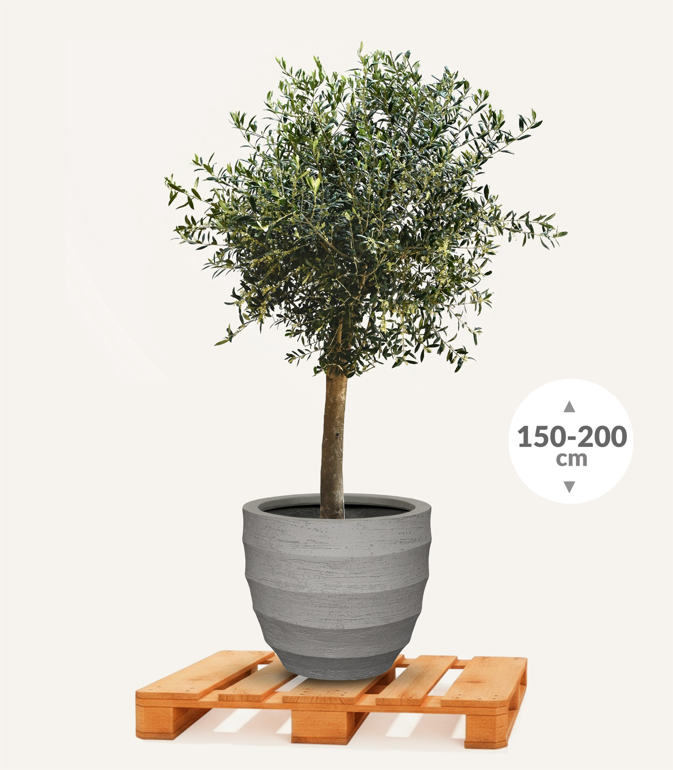 Olijfboom 20/30 in ronde relief steenlook pot