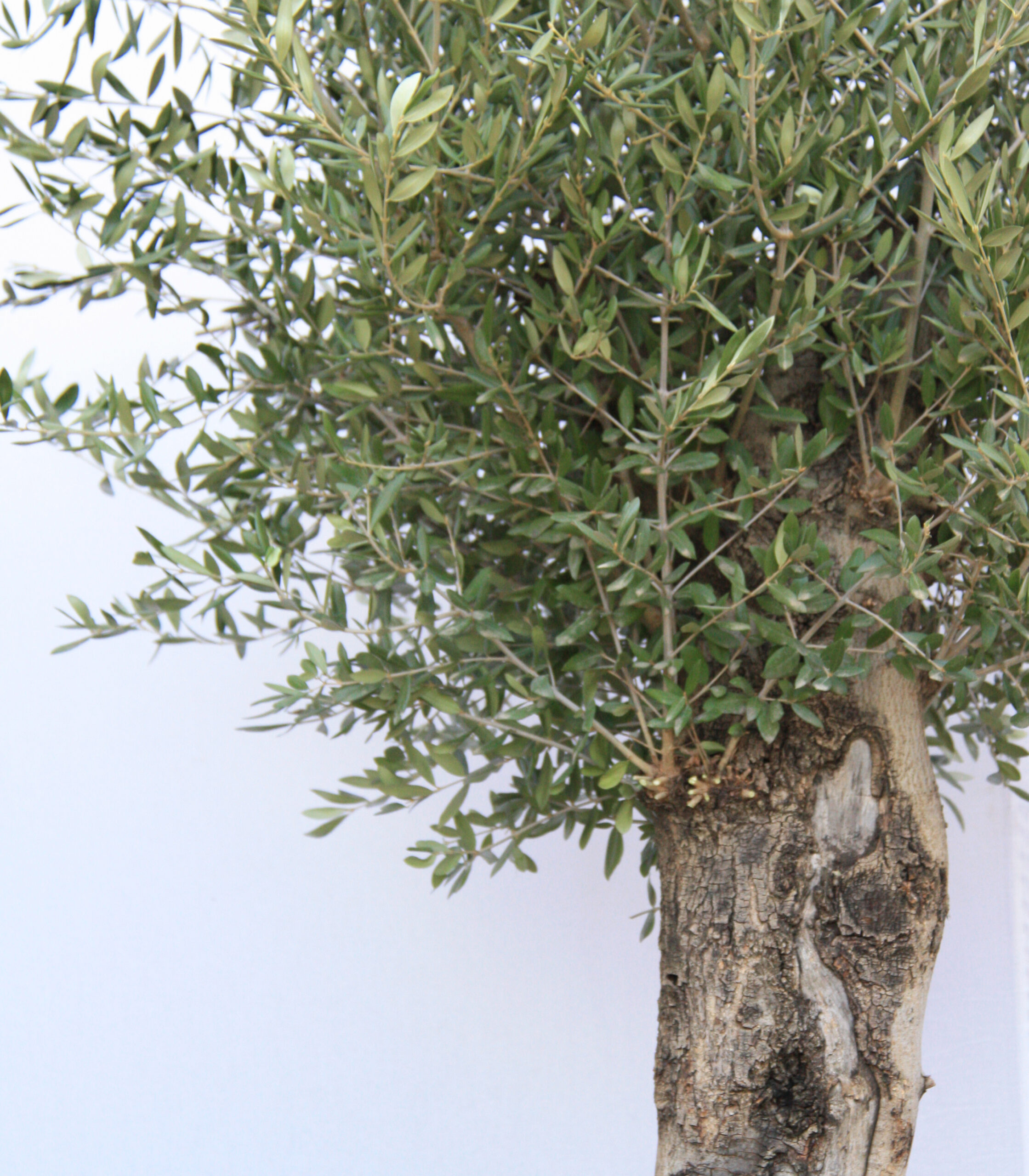 Deze oude productieboom krijgt na haar jaren trouwe dienst in de olijfboomgaard een nieuw leven in de Europese tuinen! Bij de snoei-methode ‘Bonsai’ wordt de gehele boom terug gezaagd tot één recht opgaande stam en slaat deze in één seizoen uit tot een ronde volle kroon.