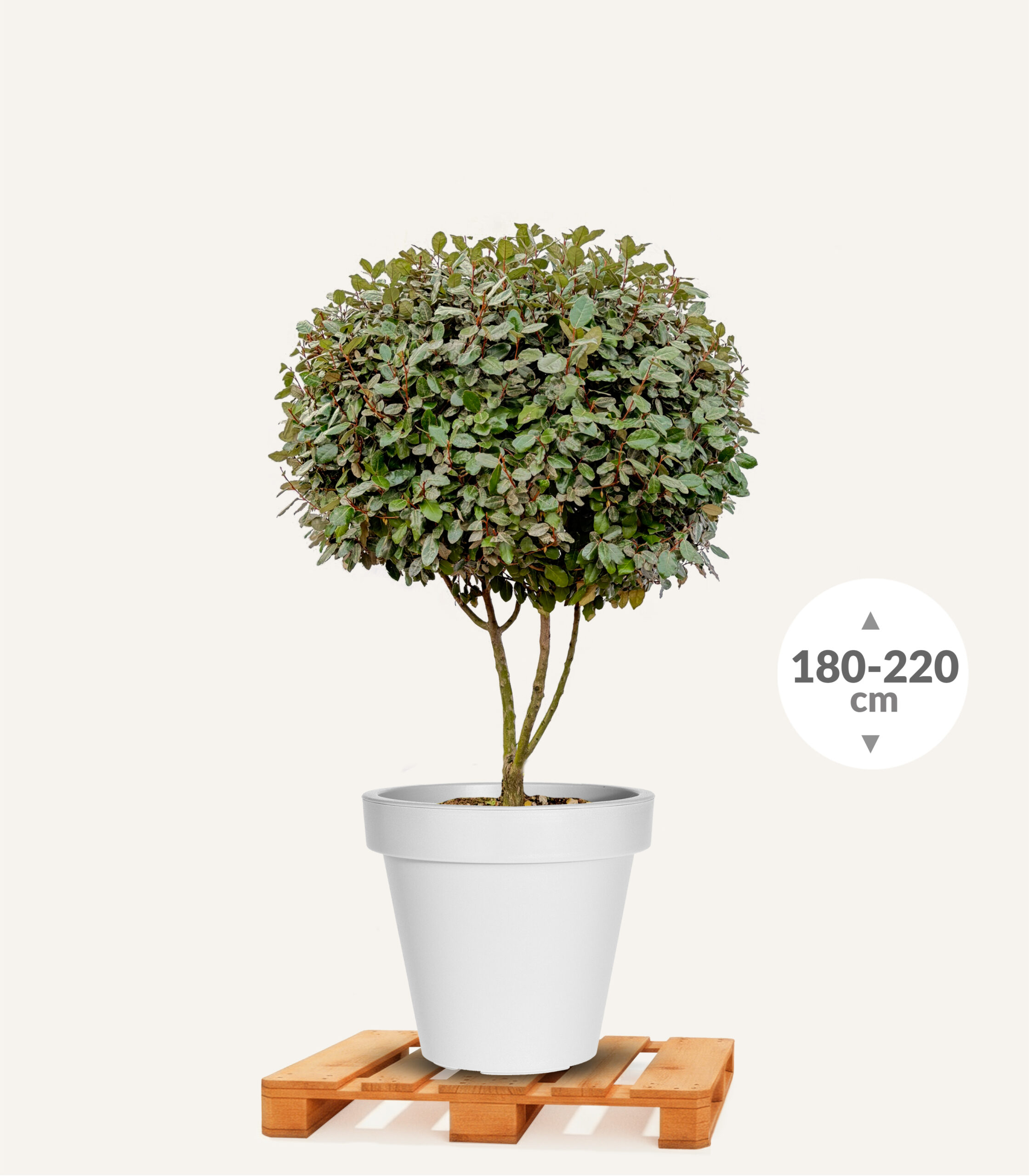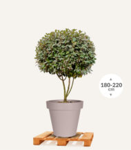 U bent als klant zelf verantwoordelijk voor het daadwerkelijk ‘plaatsen’ van de Olijfwilg in pot op de gewenste locatie. Vaak is het plaatsen van de boom in pot heel eenvoudig als u enkele krachtpatsers uit de buurt weet te strikken. Til met 3-4 man de boom in pot op en laat een andere man de pallet onder de pot uit trekken. Een alternatieve manier is om de boom in pot met 2 personen langzaam van de pallet af te draaien en op een rubber matje o.i.d. te laten zakken zodat de pot niet beschadigd. Verschuif of verplaats de pot vervolgens naar de exact gewenste locatie.