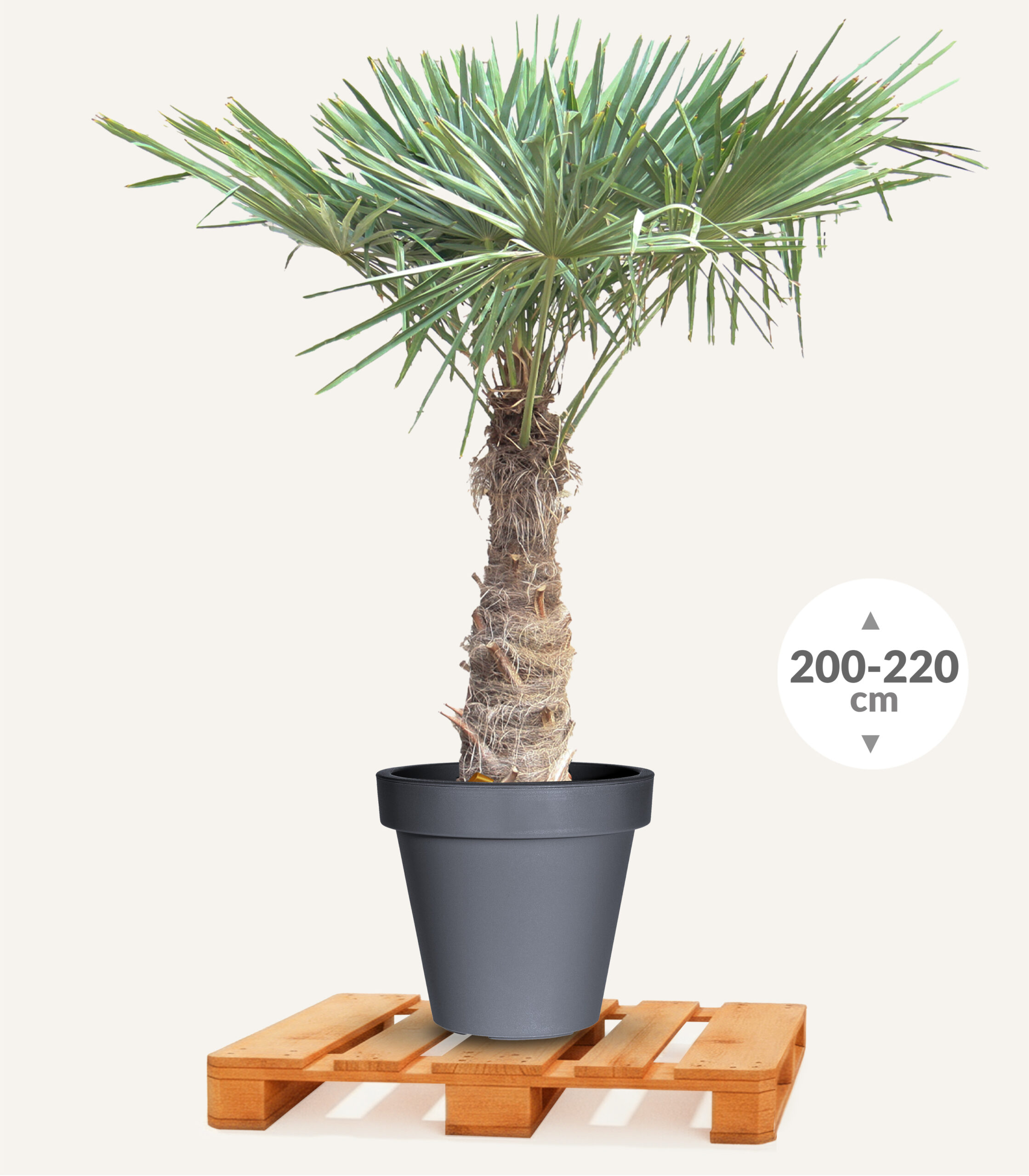 Al onze palmbomen zijn uiterst winterhard en kunnen een vorst verdragen van -10 tot -15 graden Celsius. Bij een uitzonderlijk koude winter kan het raadzaam zijn uw palmboom in te pakken met een van onze boomjassen.