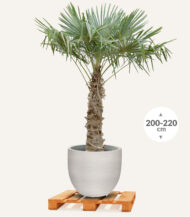 Een palmboom, kant&klaar, aangeplant in een van onze mooie sierpotten voorzien van de allerbeste aanplantgrond. Ideaal voor de ongeduldige groenfanaat: instant genieten.