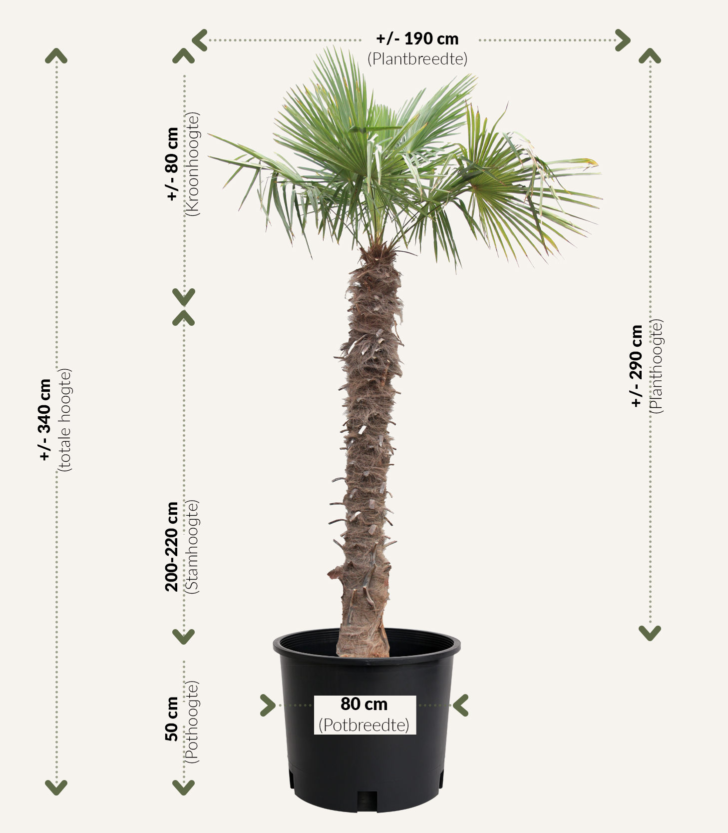 Een prachtige palmboom: Deze palmboom is geschikt voor alle tuinen, klein of groot en geeft elke tuin de vakantie-vibe. Onze palmbomen zijn winterhard en verdragen tot minus 14 graden vorst.