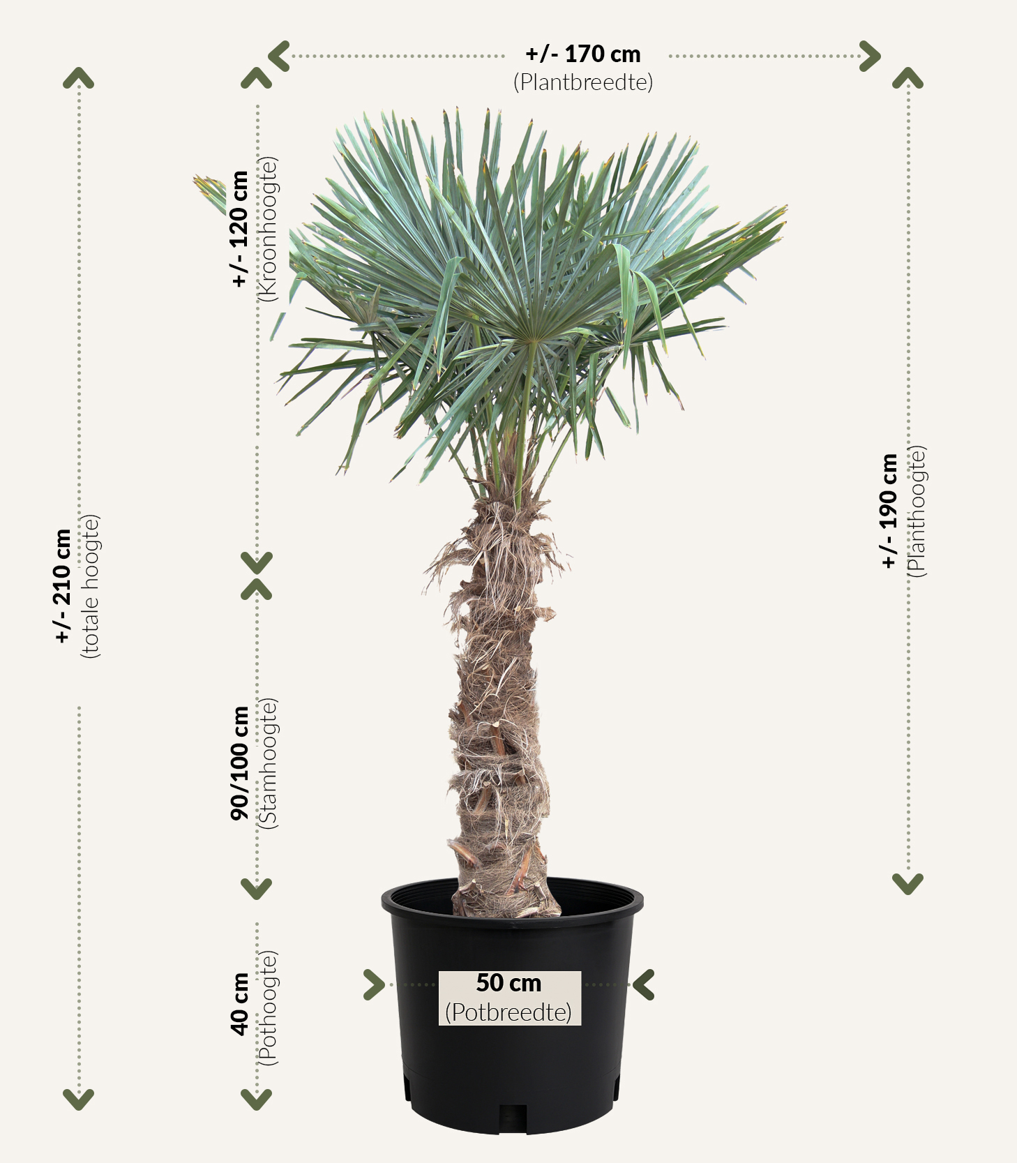 Een prachtige palmboom: Deze palmboom is geschikt voor alle tuinen, klein of groot en geeft elke tuin de vakantie-vibe. Onze palmbomen zijn winterhard en verdragen tot minus 14 graden vorst.