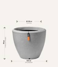 De Capi Pot is een ronde boompot met een stoere, Elegante uitstraling. De plantenbak is lichtgewicht en hierdoor makkelijk te plaatsen.