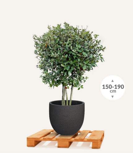 Een meerstammige Steeneik, kant&klaar, aangeplant in een van onze mooie sierpotten voorzien van de allerbeste aanplantgrond. Ideaal voor de ongeduldige groenfanaat: instant genieten.