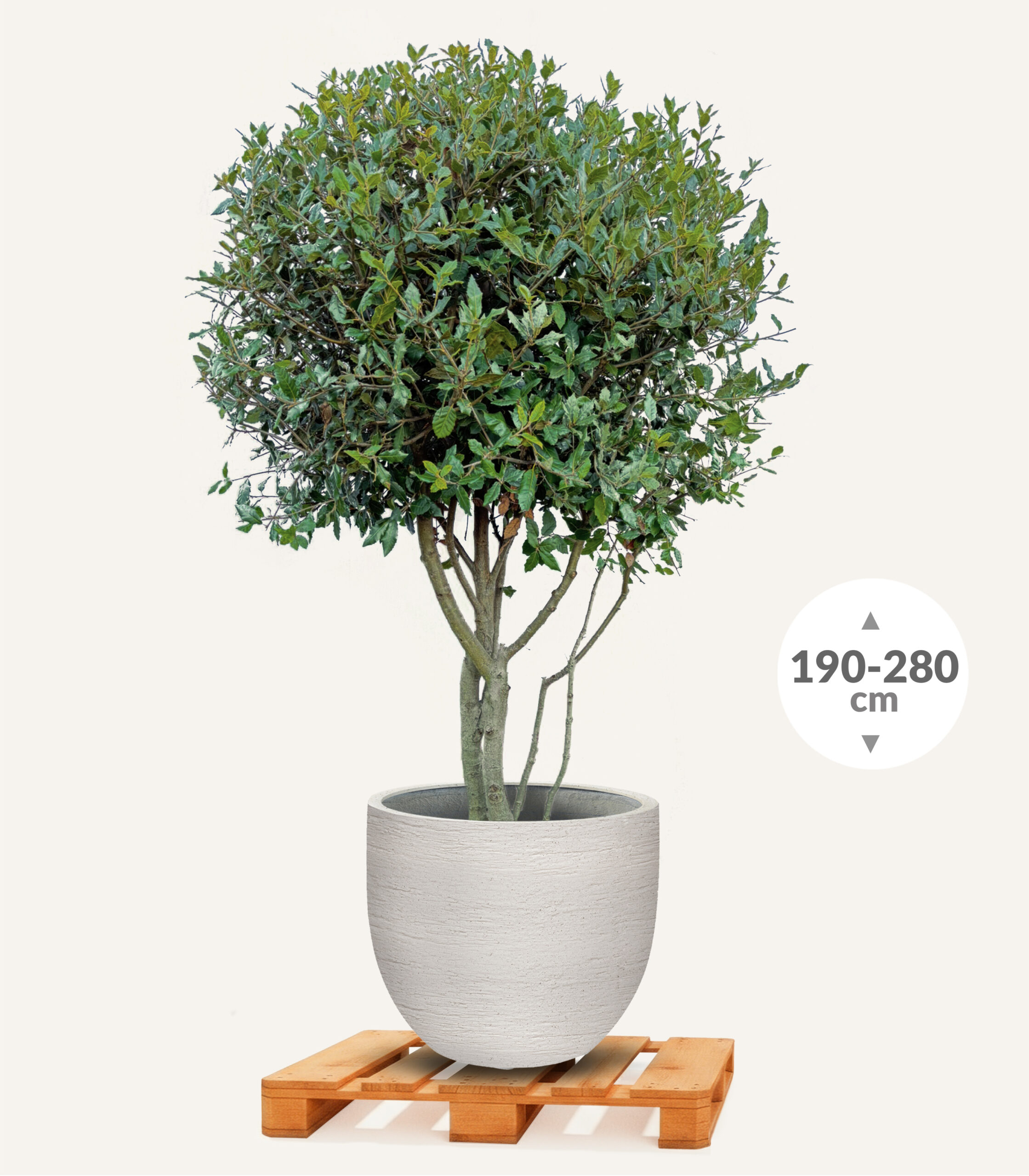 Een meerstammige Steeneik, kant&klaar, aangeplant in een van onze mooie sierpotten voorzien van de allerbeste aanplantgrond. Ideaal voor de ongeduldige groenfanaat: instant genieten.
