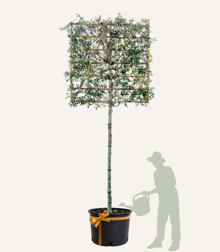 De steeneik is een sterke en goed winterharde, groenblijvende boom. Geef de boom regelmatig water, vooral in droge periodes en na aanplant. Zorg voor een goed doorlatende, voedzame grond en plaats hem bij voorkeur op een zonnige tot halfschaduwrijke plek. Met de juiste verzorging blijft de leivorm mooi dicht en strak van structuur.