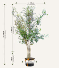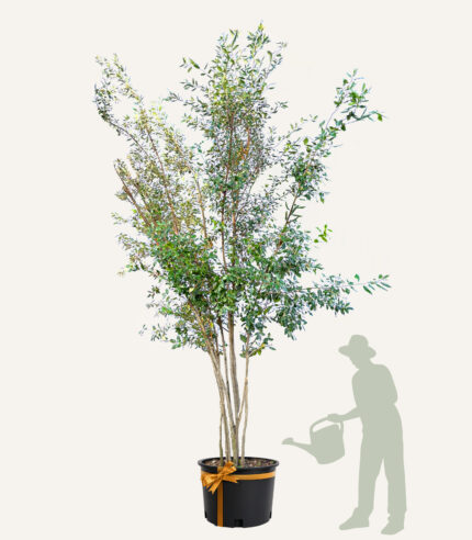 Deze karaktervolle, groenblijvende eik staat bekend om zijn leerachtige, donkergroene bladeren met een grijzige onderzijde en zijn krachtige uitstraling. In meerstammige vorm krijgt de boom een natuurlijke, sculpturale uitstraling die perfect past in zowel moderne als klassieke tuinen. Dankzij zijn sterke karakter is de steeneik zeer geschikt als solitair, bij een entree, op een terras of in een grote pot.