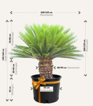 Op zoek naar een plant die je tuin direct een exotische uitstraling geeft? Dan is de Cycas revoluta, beter bekend als de vredespalm, varenpalm, cycaspalm of sagopalm, precies wat je zoekt. Met zijn glanzende, donkergroene waaierbladeren en robuuste stam voegt deze plant karakter toe aan iedere tuin. De Cycas is oersterk, traaggroeiend en verrassend goed bestand tegen het Nederlandse klimaat. Al onze Cycas-planten worden met zorg geselecteerd en rechtstreeks vanuit hun natuurlijke omgeving naar onze kwekerij gebracht.